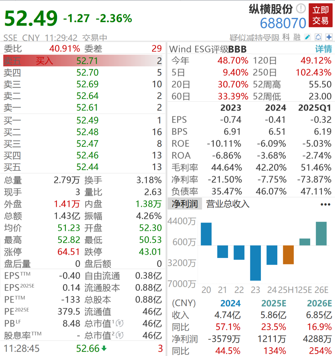 回顾之前财报,纵横股份自2021年科创板上市后,虽然营收每年持续增长,但纵横股份归母净利润连续四年亏损。